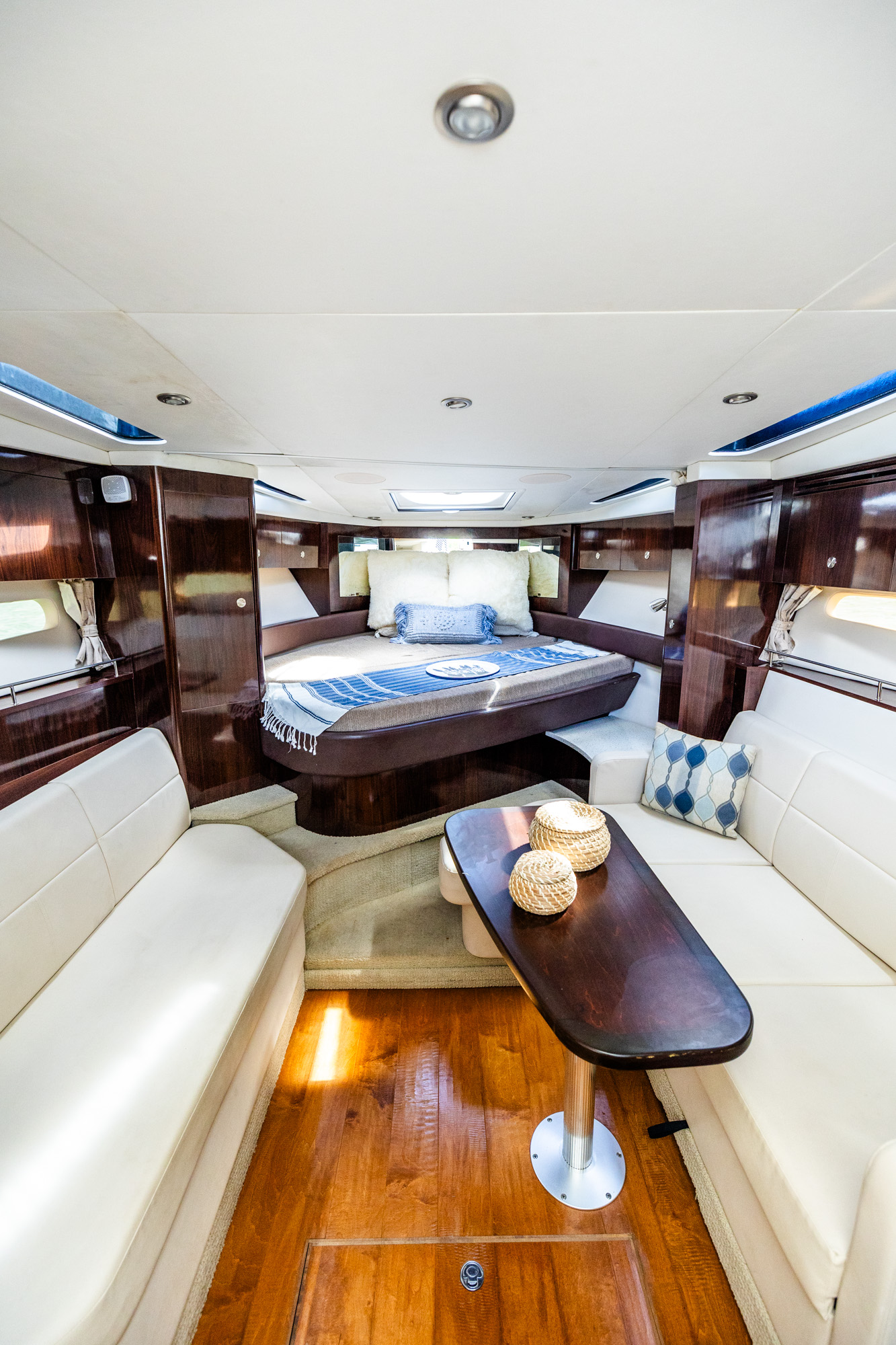 The spacious interior features a full galley, comfortable seating, and a cozy forward berth, making it perfect for extended trips. With its sleek design and advanced technology, the Sundancer 350 is an exceptional choice for those seeking both elegance and functionality on the water.